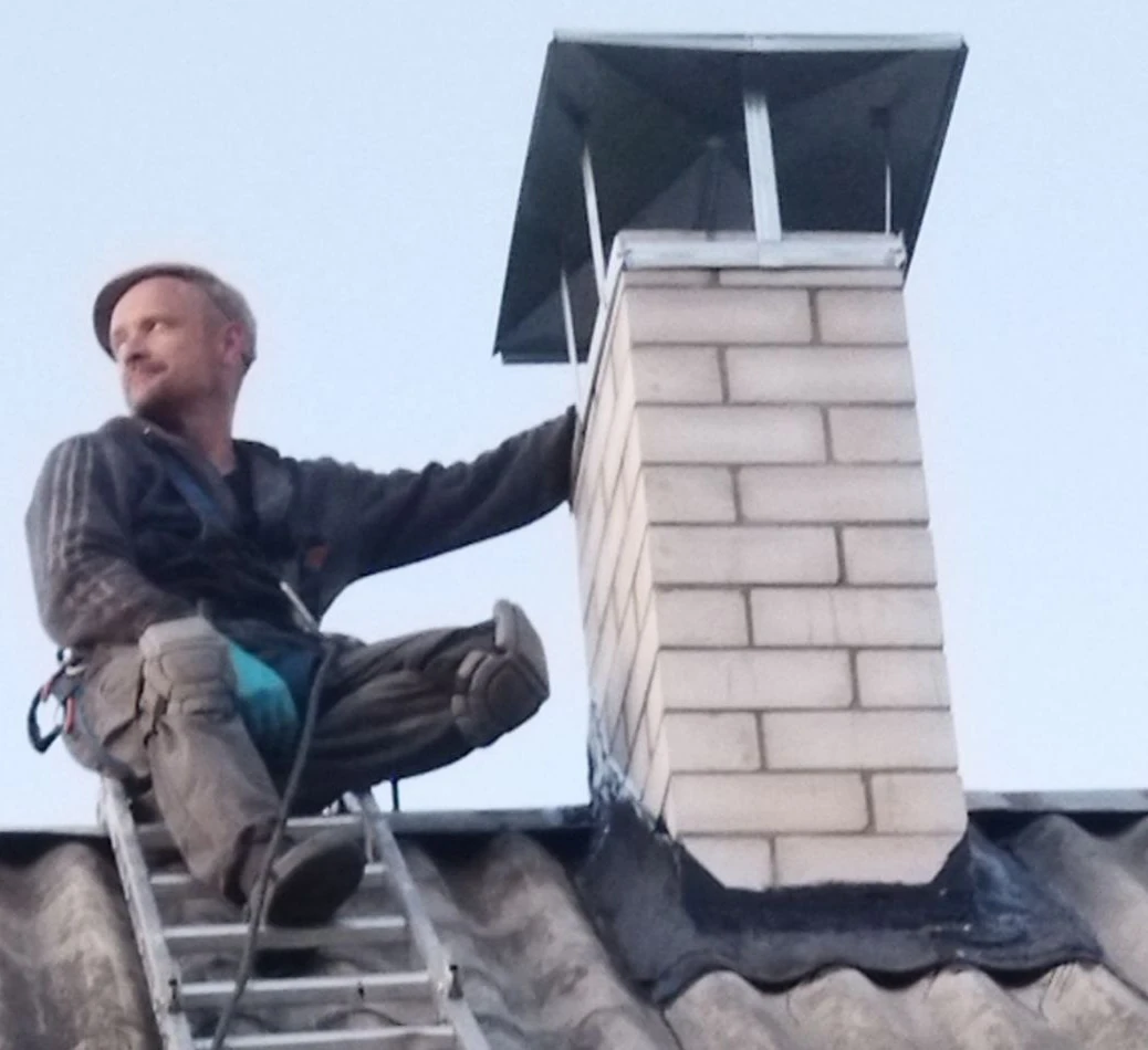 Ремонт печной трубы, выполнение гидроизоляции примыкания печной трубы к крыше.